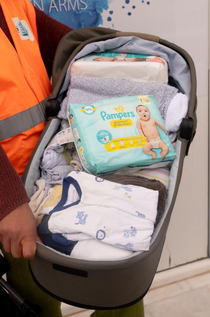 When a baby is born from parents who are asylum seekers or refugees, we provide the family with a basket full of all the essential for the first days of the baby’s life. Its contents include a baby blanket, bibs, clothes, toys, and hygiene products such as wet wipes, nappy cream, diapers, as well as supplies for the new mother, like sanitary pads, and underwear.